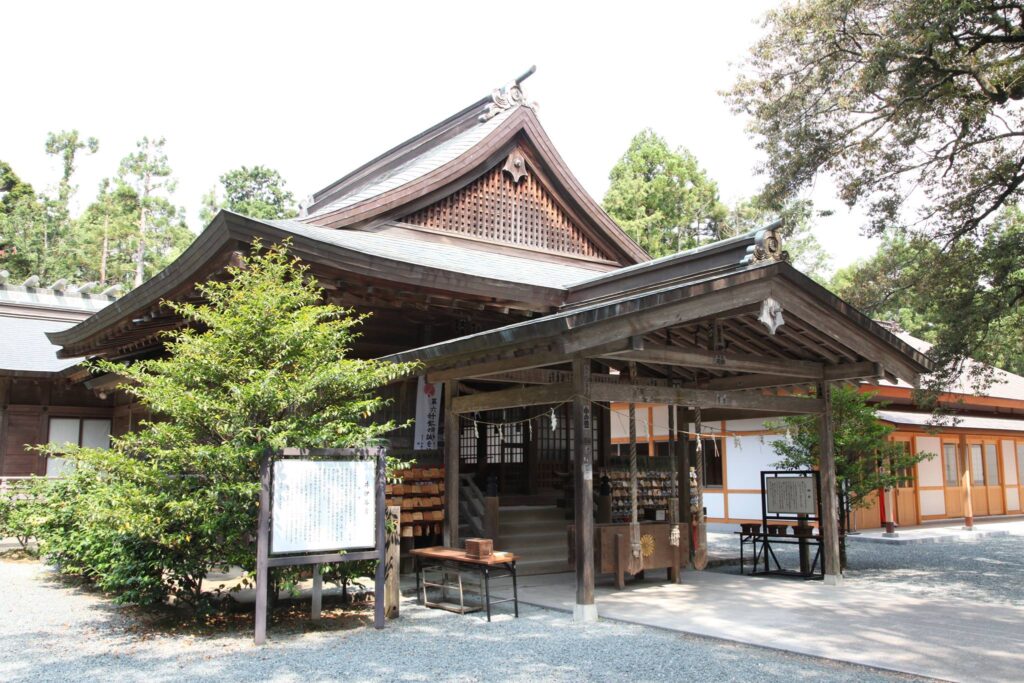 井伊谷宮の境内には、歴史ある社殿や御神木、美しい自然の風景が広がっています。